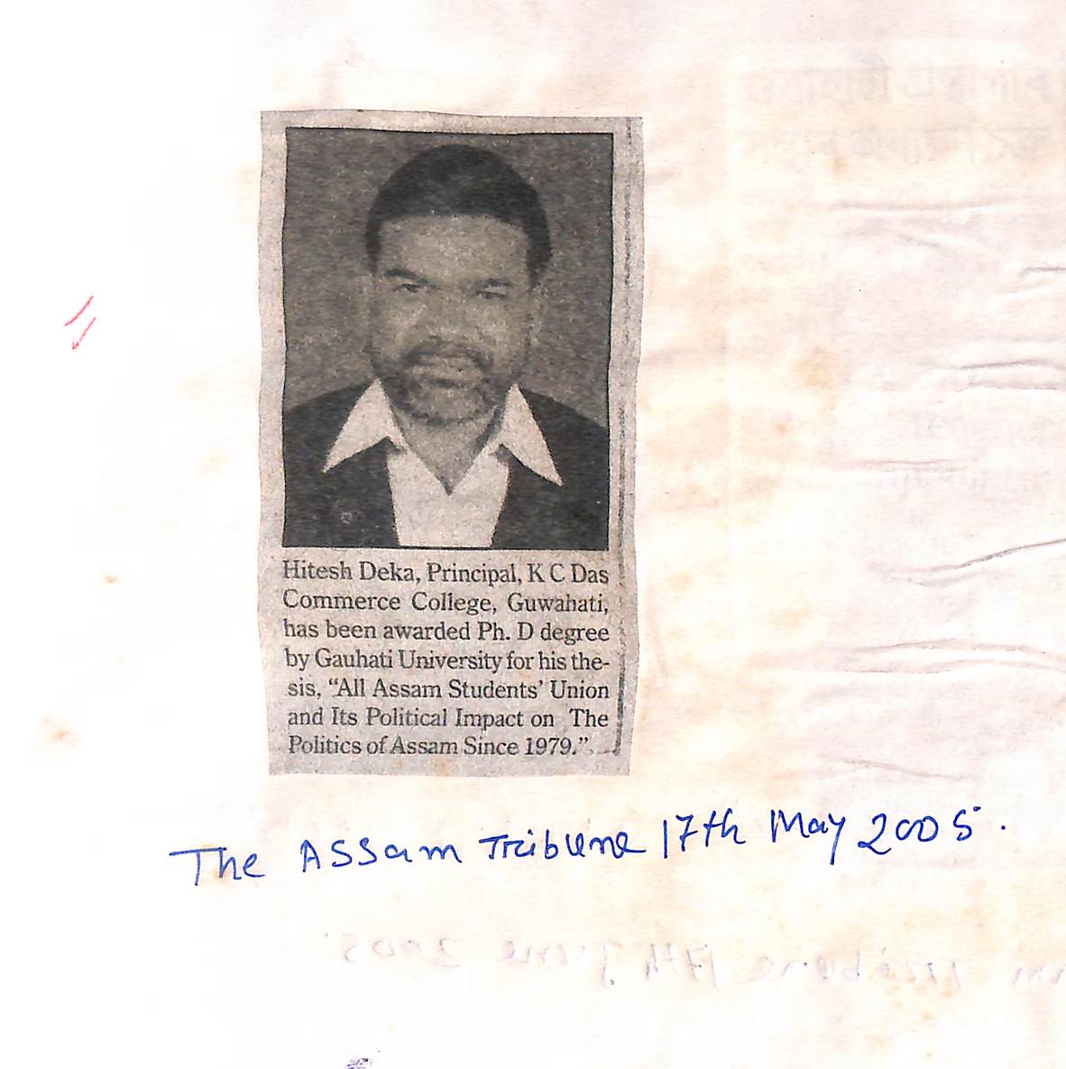| Keywords: | PhD Award - Hitesh Deka K.C. Das Commerce College 2005 The Assam Tribune |